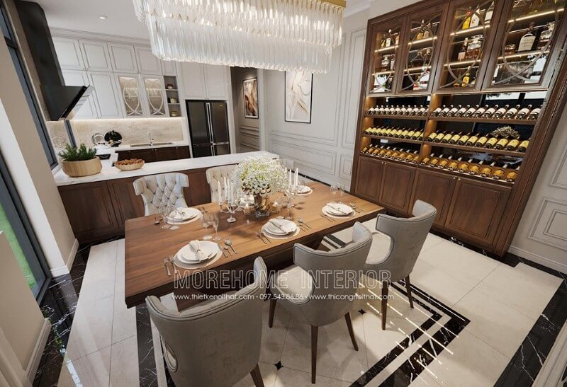 Thiết kế nội thất phòng ăn biệt thự gỗ tự nhiên phong cách tân cổ điển sang trọng và đẳng cấp